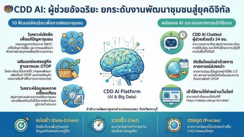 CDD AI เป็นแพลตฟอร์มและเว็บไซต์ที่ใช้เทคโนโลยี ปัญญาประดิษฐ์ (AI) เพื่อช่วยงานพัฒนาชุมชน โดยรวบรวมข้อมูล เครื่องมือ และสารสนเทศสำคัญไว้ในที่เดียว ช่วยให้เจ้าหน้าที่และประชาชนเข้าถึงข้อมูล วิเคราะห์สถานการณ์ และวางแผนพัฒนาชุมชนได้รวดเร็วและมีประสิทธิภาพมากขึ้น